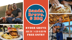 Wrap up your summer with good music, good food, and good times. The Food Court opens at 4:30pm, and Ryder Grove starts playing at 5:30pm, so come grab your BBQ pork ribs, brisket tacos, and waffle fries (or a vegan sandwich, if that’s how you roll!) and hang out with your friends while supporting a local musician.