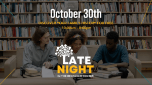 Uncover your family’s story at the MDC! Join us for Late Night at the Research Center on Thursday, October 30, from 10:00am to 8:00pm. During these extended hours, you can explore the rich history of your ancestors at your convenience.
